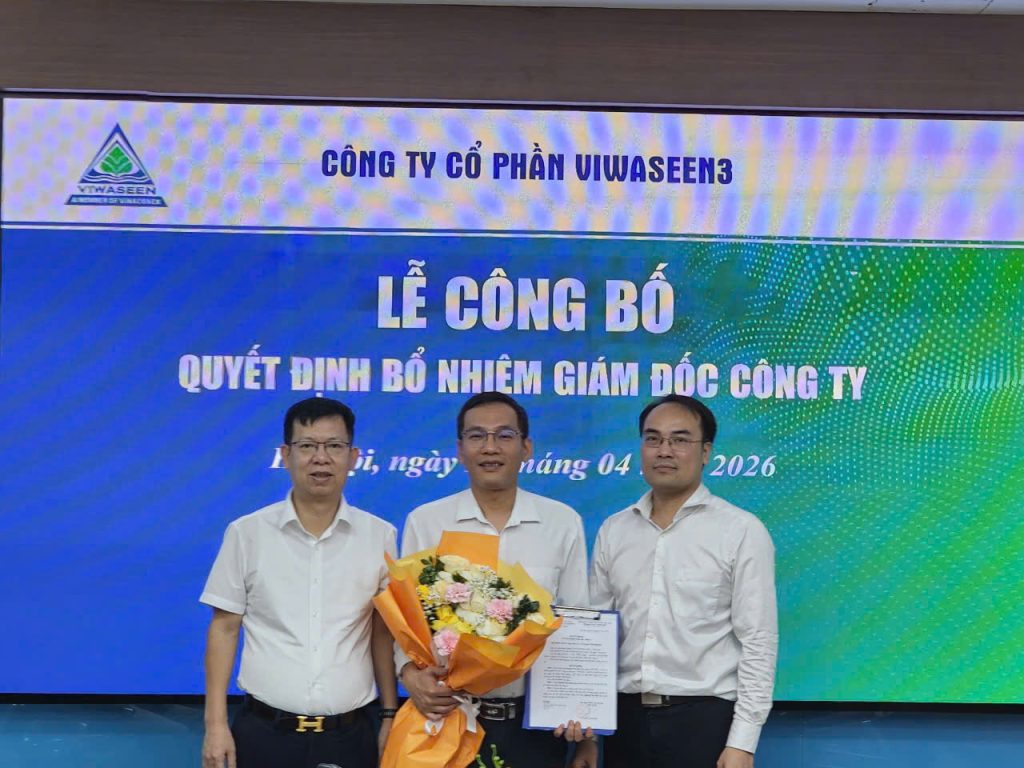 Ngày 29/04/2026, tại Hà Nội, Công ty Cổ phần VIWASEEN3 đã trang trọng tổ chức Lễ công bố và trao quyết định bổ nhiệm chức danh Giám đốc Công ty đối với ông Nguyễn Phi Hòa. Sự kiện đánh dấu bước kiện toàn bộ máy lãnh đạo điều hành, hướng tới mục tiêu phát triển đột phá và bền vững trong giai đoạn mới.